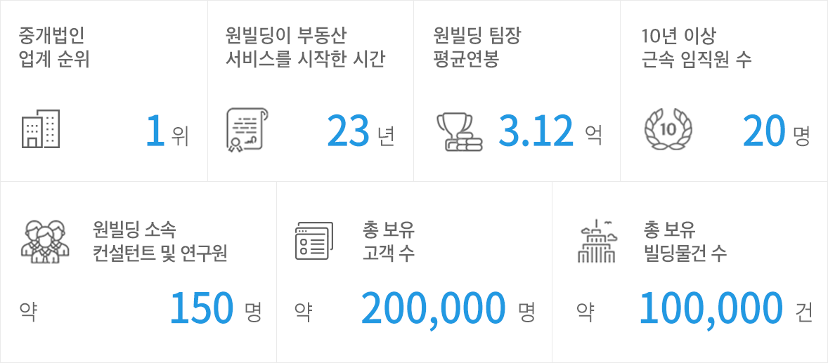 원빌딩부동산(주)은 20여년간의 경험과 노하우를 바탕으로 물건을 직접 발굴하고